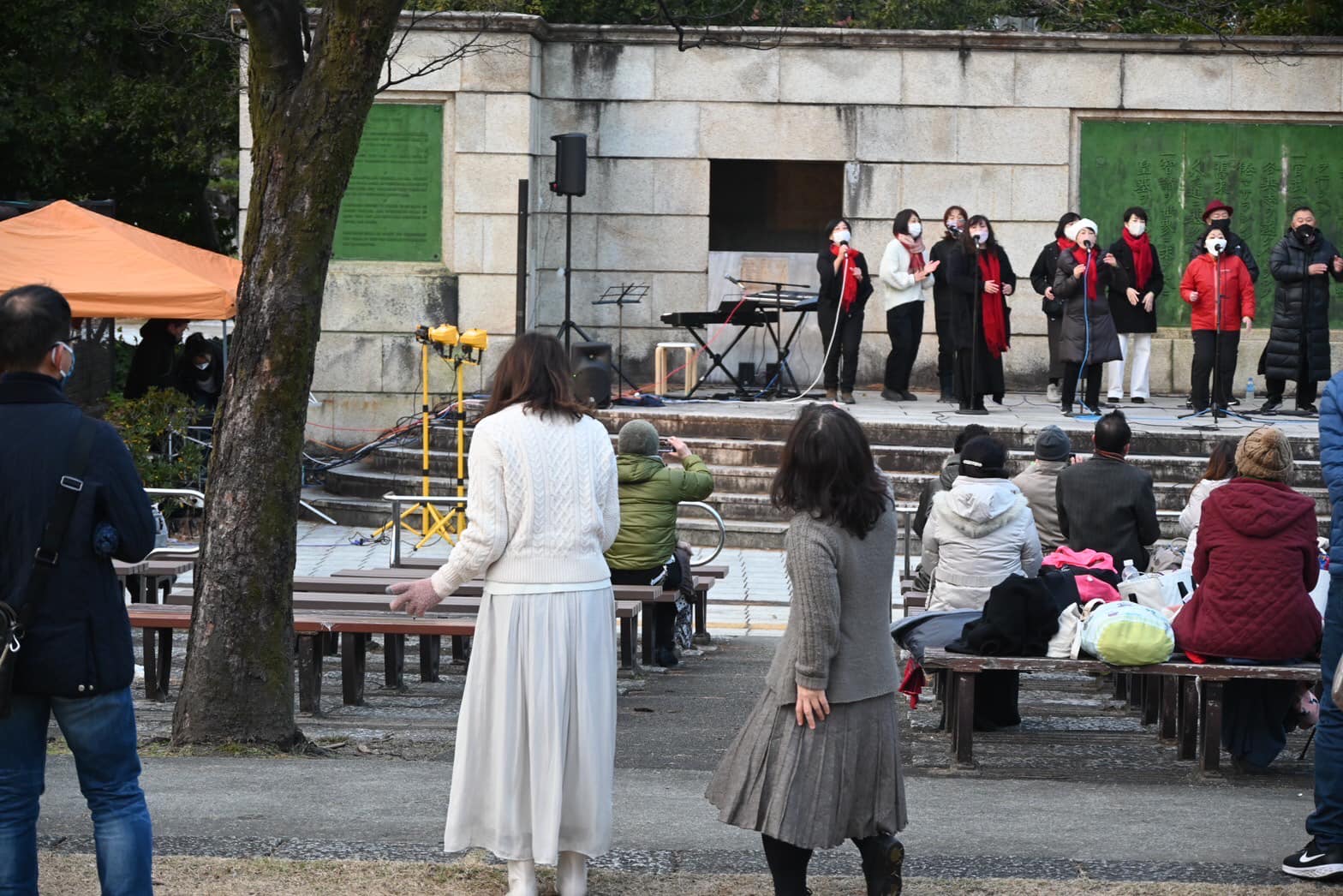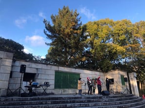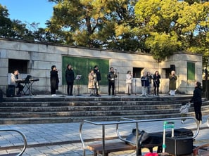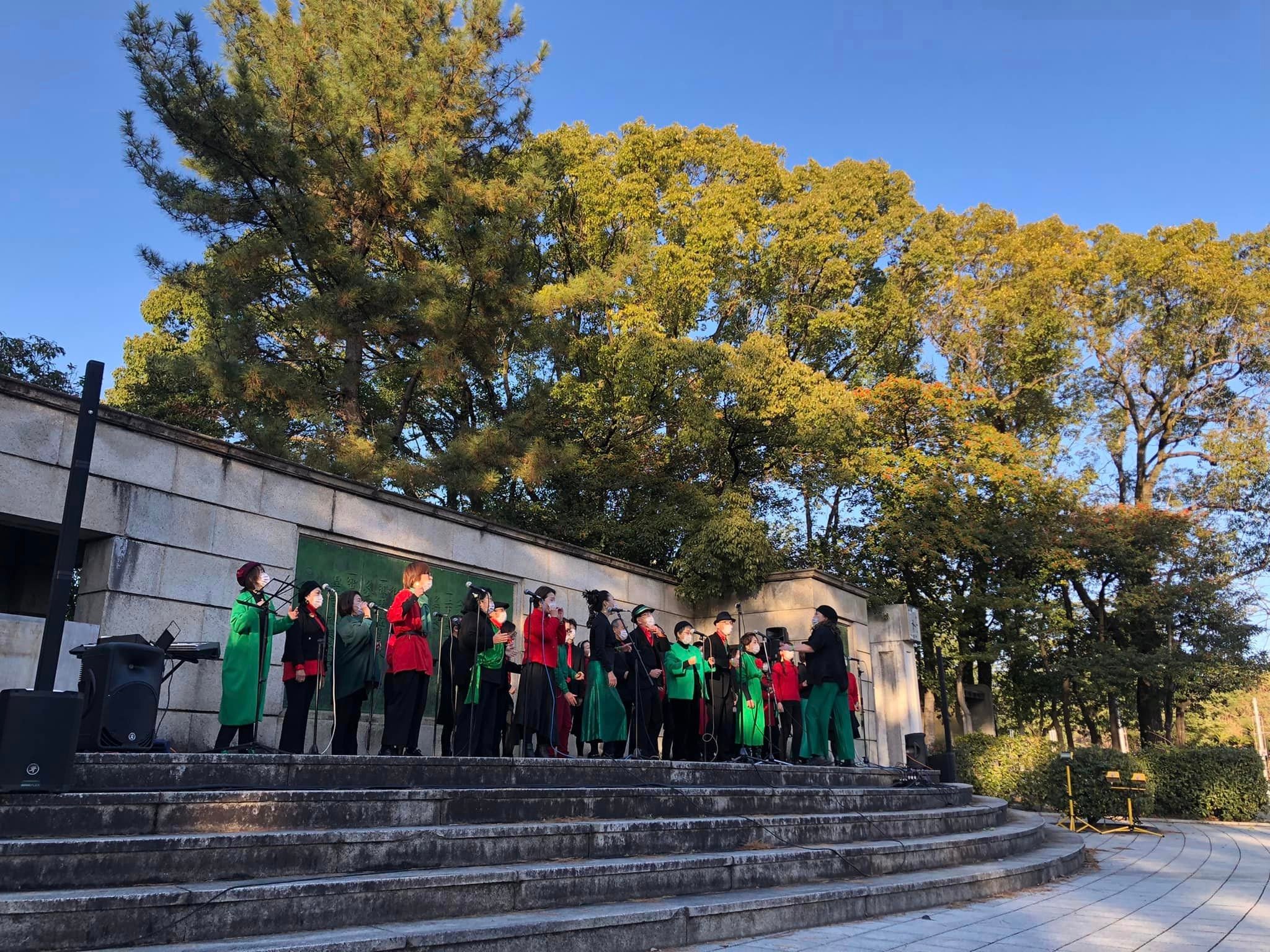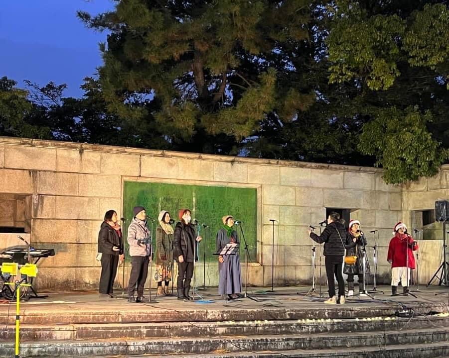 名古屋グレイスキリスト教会のクワイア。2022年9月に発足したばかりで、このクリスマスに教会と、このわいわいミュージックフェスでデビューです。